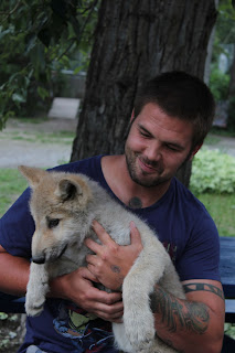 After Lake O'Hara, the second leg of our trip was Golden, BC. There's a wolf sanctuary there that Steve's been dying to go to since I met him. But since we thought it was an 8 hour drive, the trip never became a priority. The wolf sanctuary was pretty neat. We got to meat the wolf pack that was comprised of mostly rescue wolves. All of them were raised in captivity, not by the owners' doing. Most of them were orphaned at a very young age and a couple were 10% part dog which some people bred them to be pets but decided eventually that their wolf side was a little bit too much to handle once they got older. There were a couple of little orphaned wolf cubs that were at the center when we visited, and we got to hold them and take pictures with them.